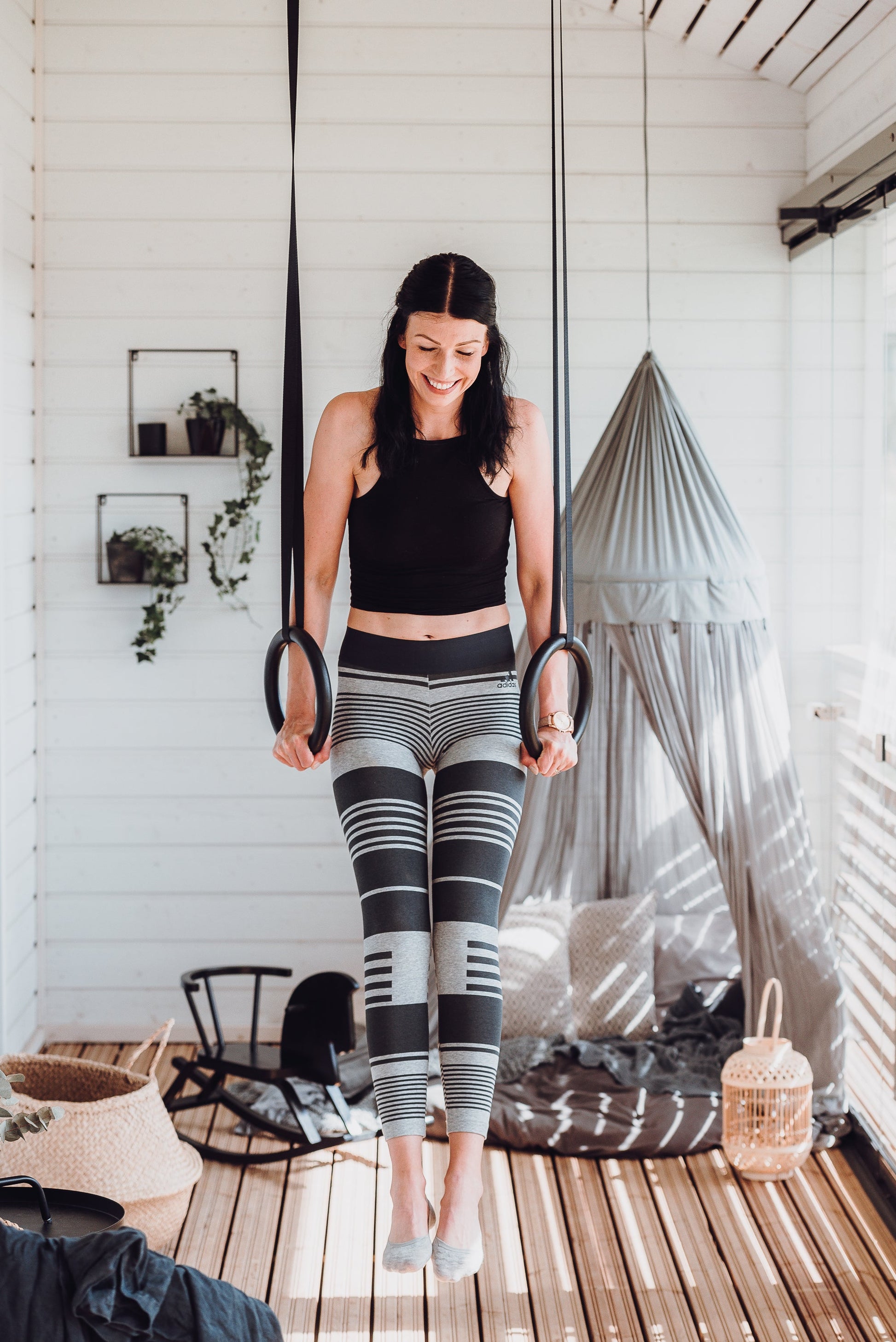 Disse gymnastikkringene er ikke hvilket som helst treningsutstyr. De samler ikke støv i et hjørne, men engasjerer alle brukere, og bringer bevegelse og smil til alle! Med turnringer kan du skreddersy hjemmetreningen til ditt nivå, enten du er nybegynner eller en erfaren idrettsutøver. Du bestemmer vanskelighetsgraden ved å justere stroppens lengde og kroppsvinkel i løpet av sekunder. Hvert trinn i produksjonen av gymnastikkringene våre gjøres i Finland ved hjelp av hjemlige materialer. Ved å gjøre det er vårt sluttprodukt ikke det billigste alternativet, men heller holdbart, trygt og miljøvennlig. Sikkerhet er spesielt viktig for oss, og vi prioriterer kvalitet og ansvar for å sikre at du og dine kjære kan nyte treningsøktene og gymnastikkaktivitetene dine fullt ut!