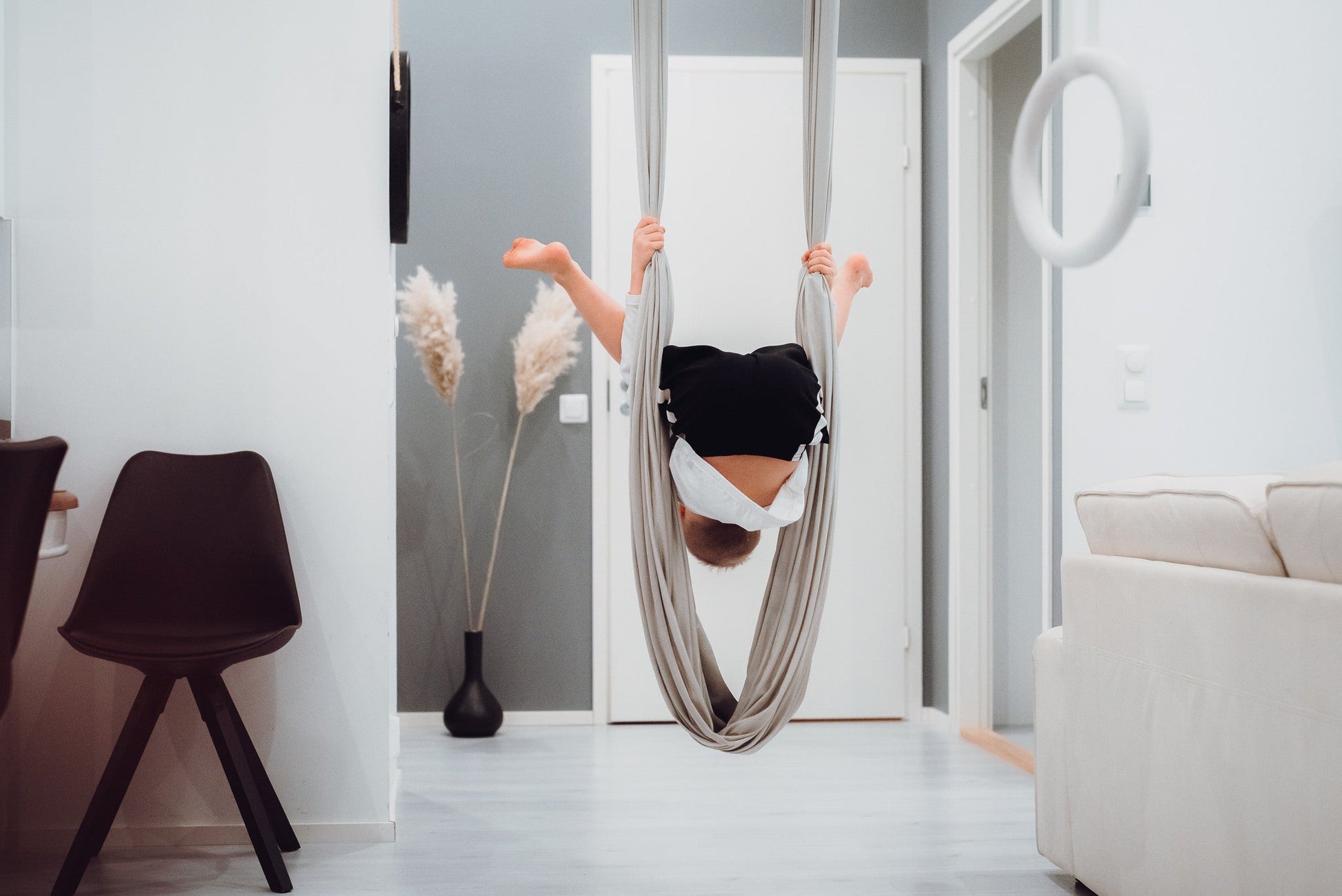 Bestill et nydelig aerial yoga-stoff til hjemmet ditt! Starter du aerial yoga trening? Sammen med kjøpet, vil du motta 2 timer med instruksjonsvideoer om grunnleggende aerial yoga, og bare i dag, vil du få aerial yoga-stoffet til den beste prisen av året.